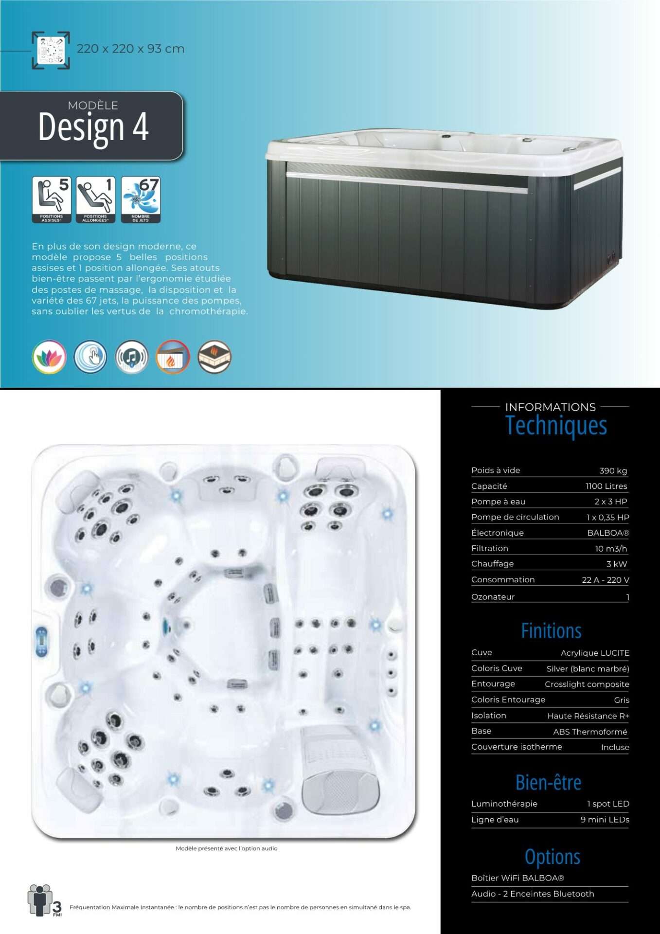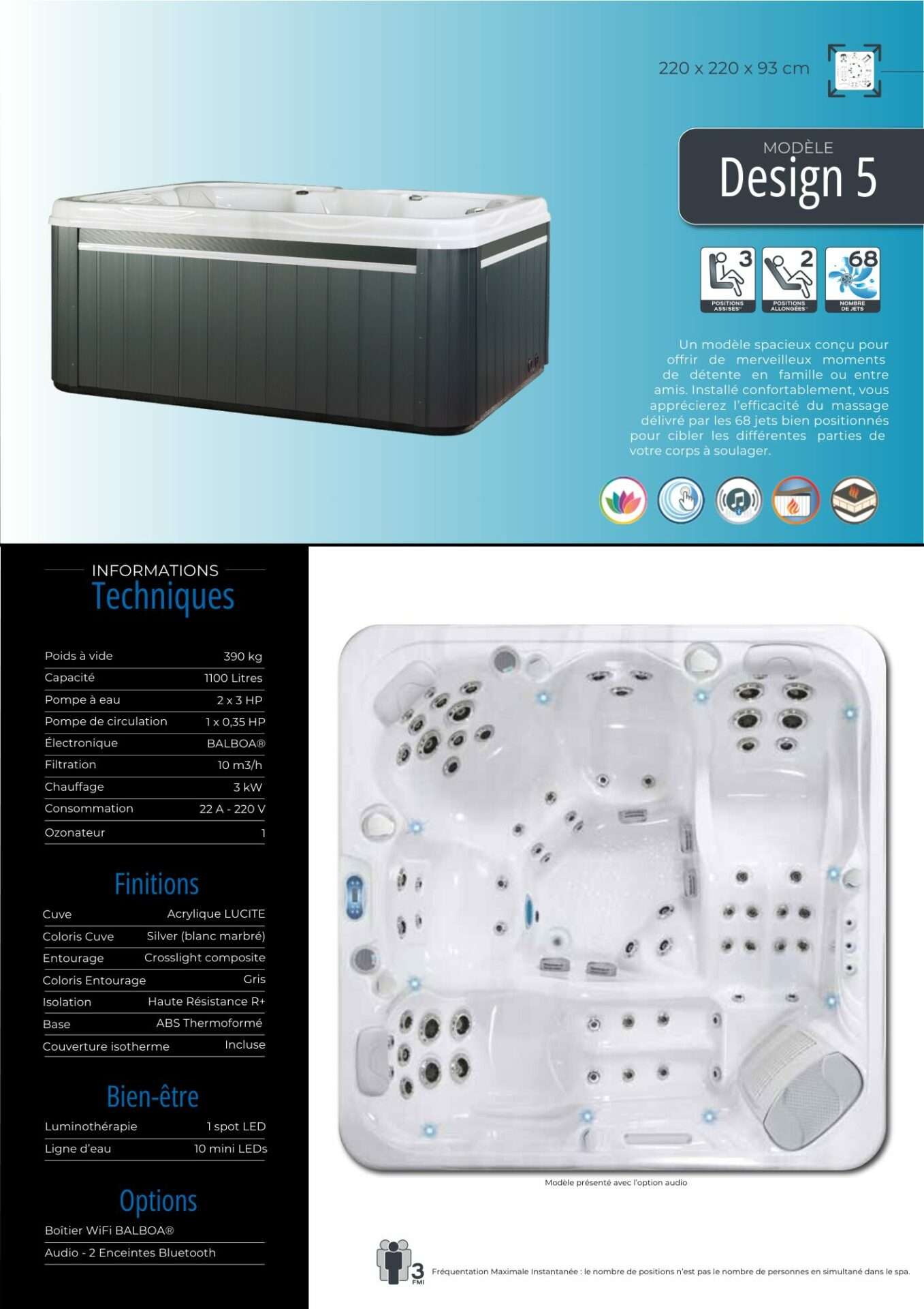 Plongez dans un monde de relaxation et de bien-être avec MECASPA. Explorez nos fiches spas pour découvrir nos modèles sous la marque DESIGN SPA. Chaque gamme de spas répond à des besoins spécifiques et offre une expérience unique. Nos fiches spas vous fourniront toutes les informations nécessaires pour faire le choix idéal.