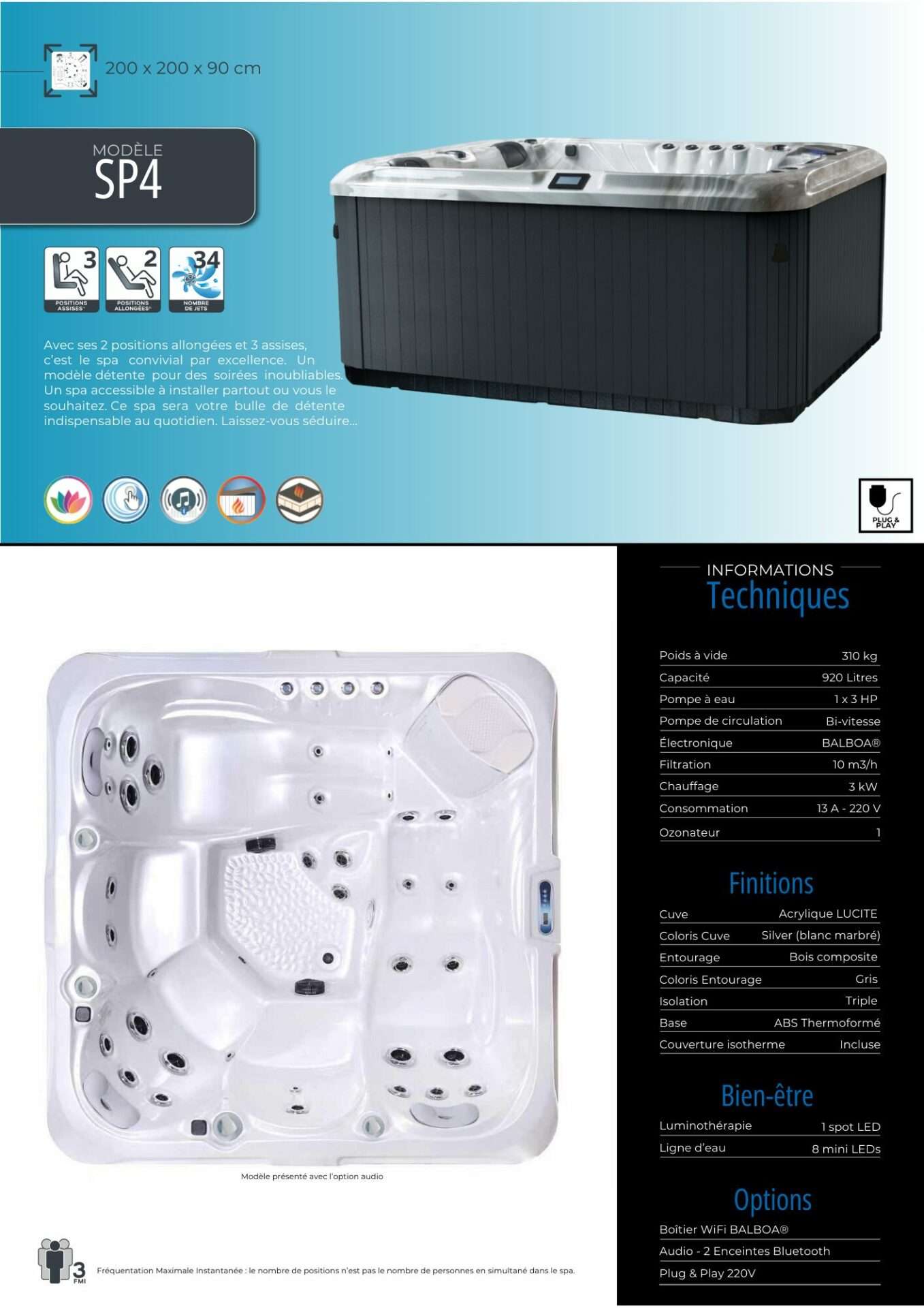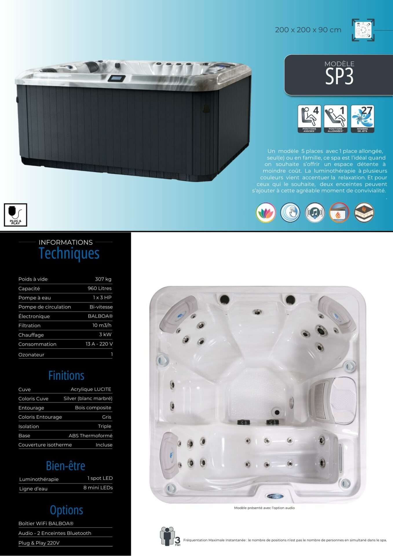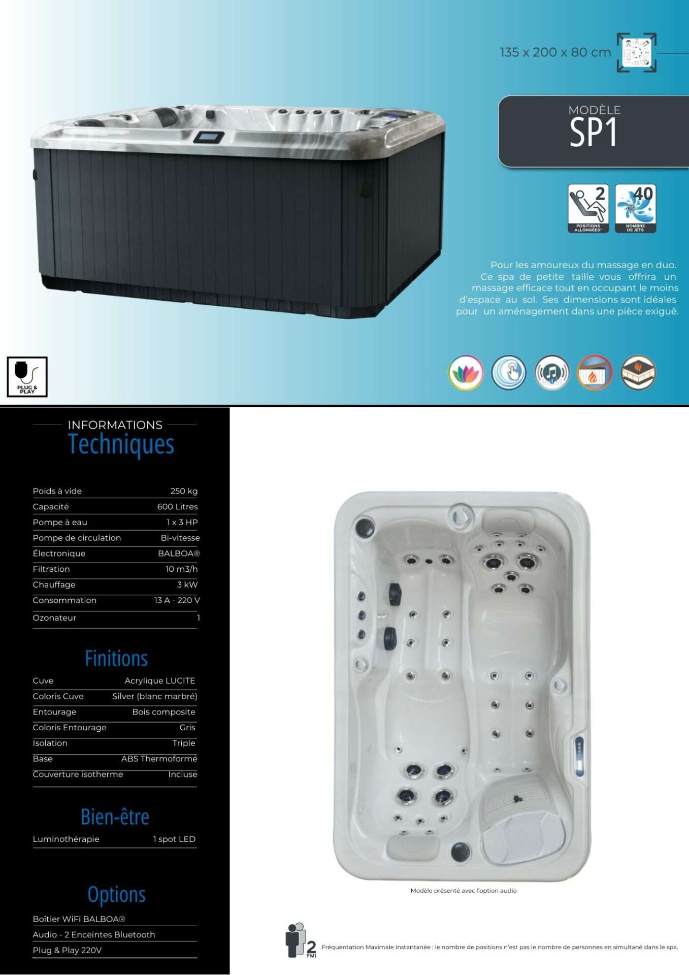 Les spas Plug and Play de DESIGN SPA sont parfaits pour ceux qui souhaitent une installation facile et rapide. Ces spas ne nécessitent aucune installation compliquée ni modifications électriques majeures. Ils sont simplement branchés et prêts à l’emploi, permettant une relaxation immédiate. Idéaux pour les espaces réduits, nos spas Plug and Play sont conçus pour un usage convivial, offrant un excellent rapport qualité-prix tout en garantissant performance et confort optimal.