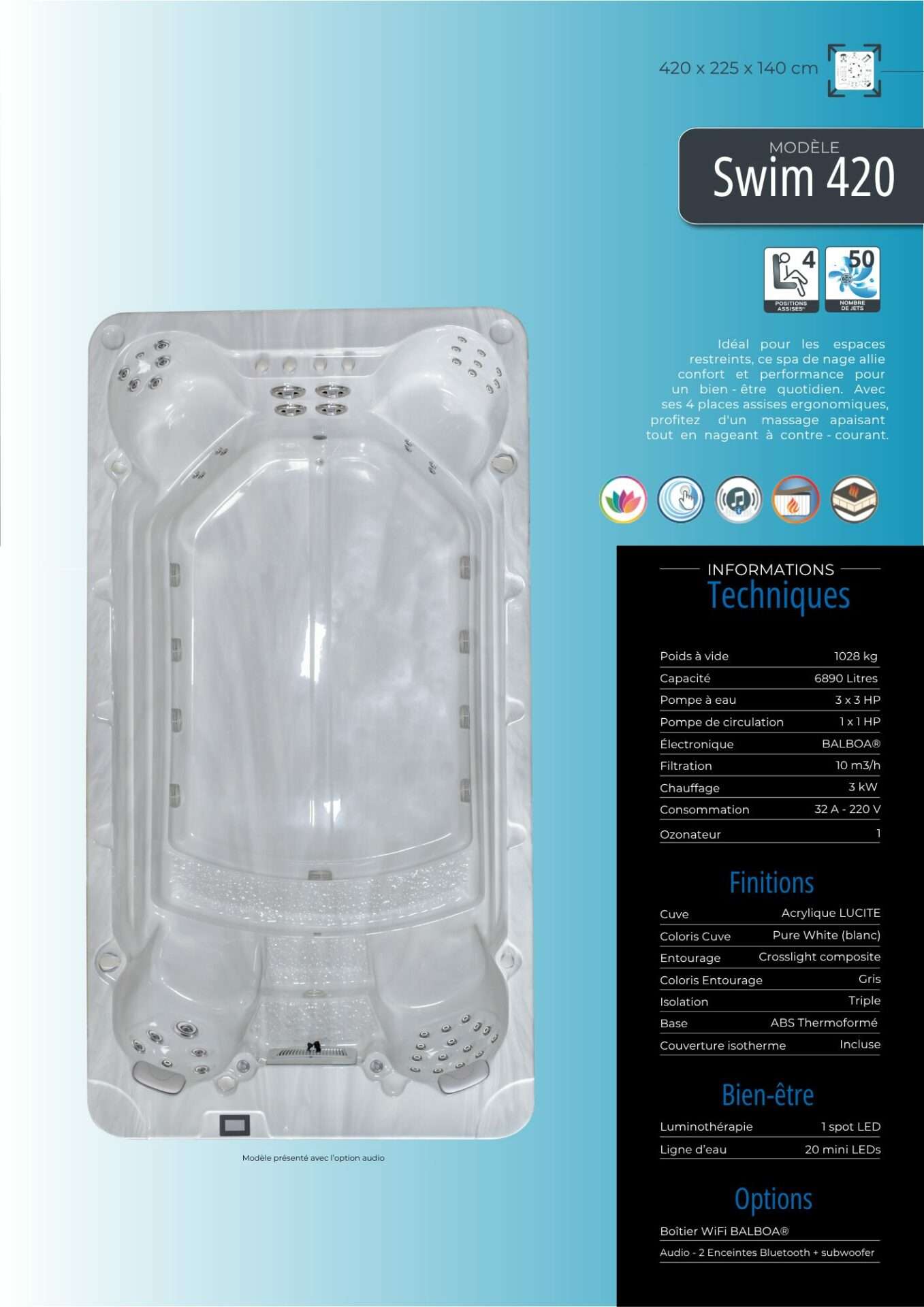 La gamme de spas de nage DESIGN SPA combine l’exercice et la détente dans un seul produit polyvalent. Nos spas de nage sont parfaits pour les entraînements aquatiques, offrant un espace suffisant pour nager à contre-courant tout en bénéficiant des avantages thérapeutiques des jets de massage. Vous retrouverez des modèles compacts pour petits espaces ou pourrez opter pour un bassin Bi-zone pour les clients les plus exigeants. Ces spas de nage répondent aux besoins des amateurs de fitness et des passionnés de relaxation.
