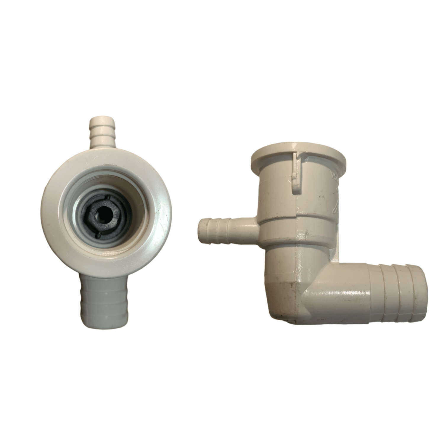La Douille Waterway cluster jet coudée 3/4″M – 3/8″M permet de raccorder un jet cluster dans un spa en séparant les circuits d’eau et d’air. Son embout cannelé 3/4″ alimente l’eau, tandis que le second embout cannelé 3/8″ injecte l’air. Ainsi, cette configuration assure une alimentation complète du jet tout en simplifiant son intégration à l’arrière de la cuve.