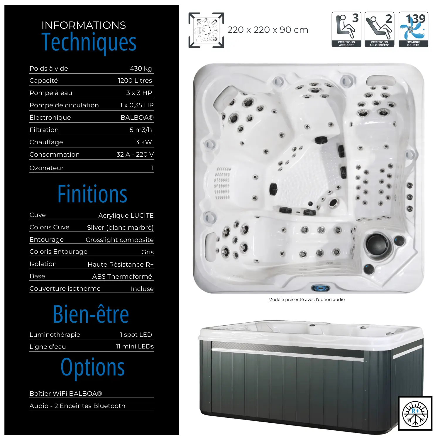 Retrouvez toutes les caractéristiques techniques détaillées du spa pour préparer votre projet d’installation.
