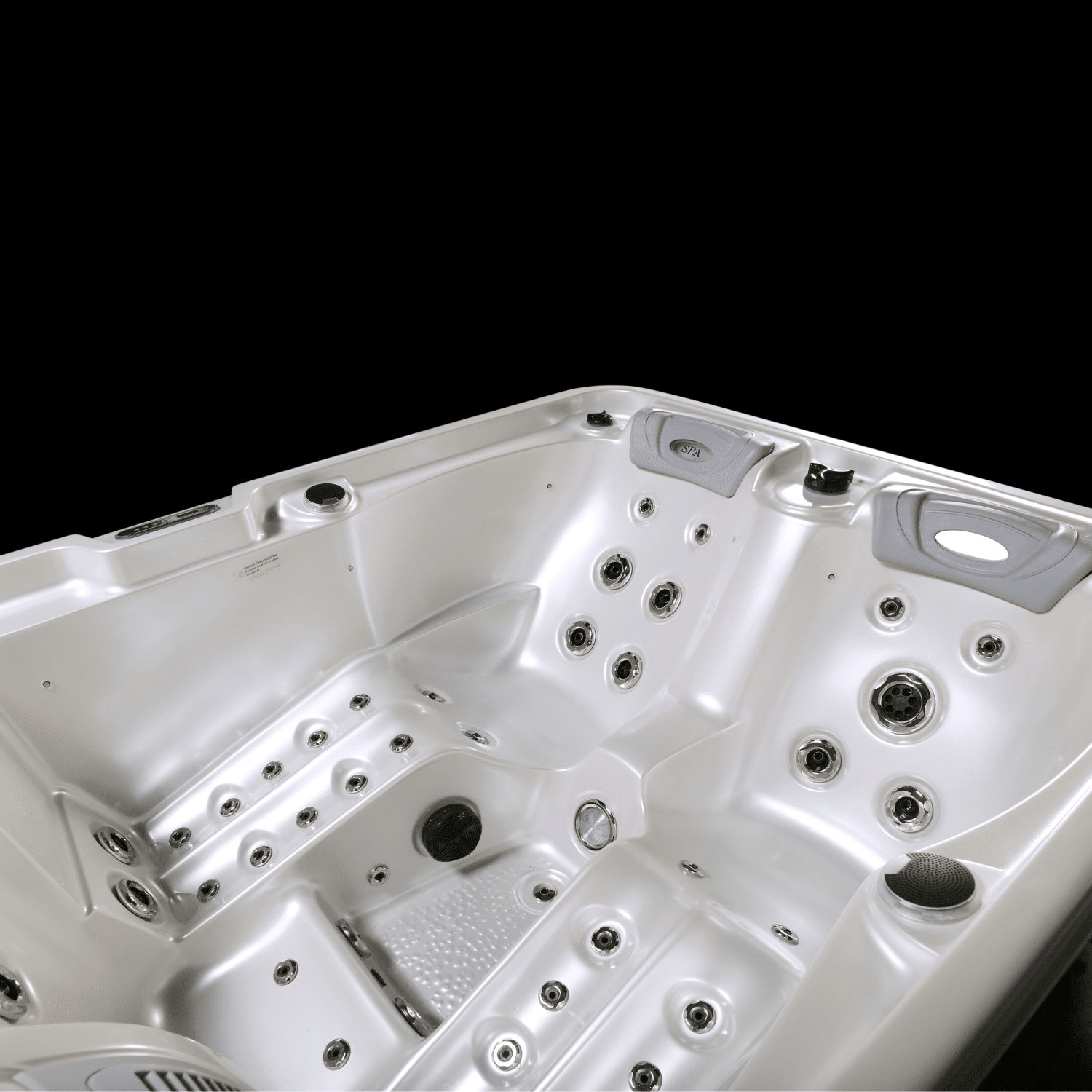 Le spa SP4 est conçu pour offrir une expérience de détente complète à cinq personnes. Grâce à ses deux places allongées et ses trois places assises, il permet de varier les postures selon les envies : immersion totale ou pause plus dynamique.