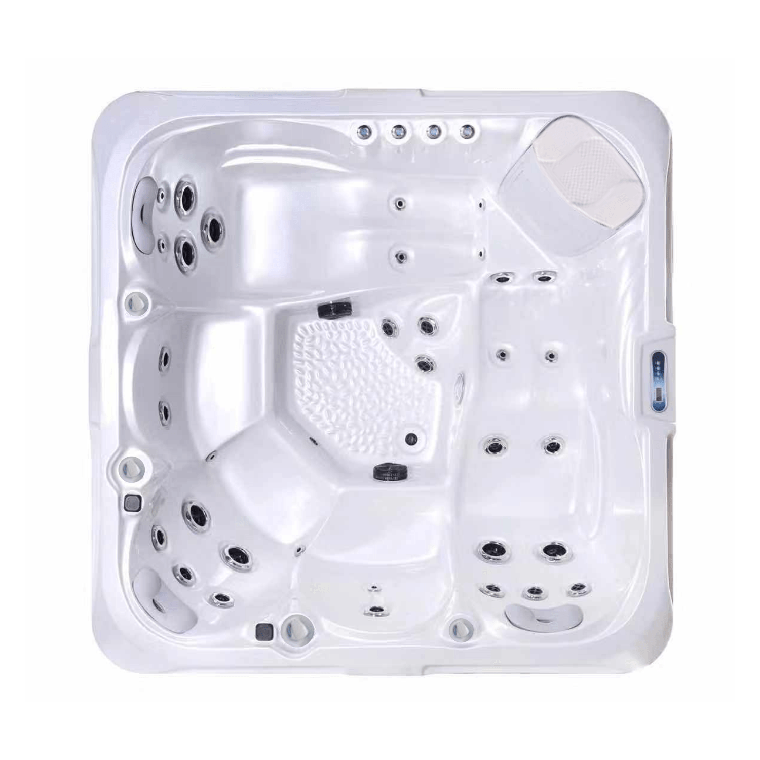 Le spa SP4 est conçu pour offrir une expérience de détente complète à cinq personnes. Grâce à ses deux places allongées et ses trois places assises, il permet de varier les postures selon les envies : immersion totale ou pause plus dynamique.
